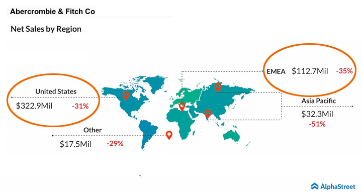 Globaly, Abercrombie and Fitch saw net sales down 31% in the United States, while EMEA saw net sales down 35%. We prioritized the United States as our initial region to focus on to achieve the greatest overall impact.
