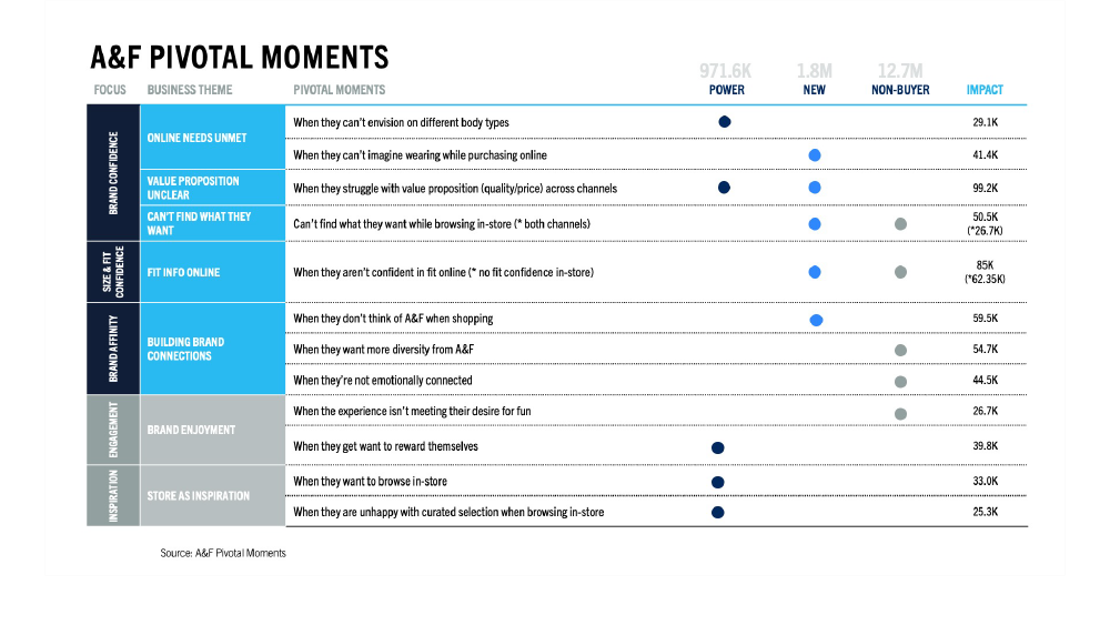 Net sales plummeted in 2020 with a loss of $699 million, with the flagship brand down 30%, and Hollister down 36%. Understanding what our customer needs were that we failed to deliver upon became the top priority for the organization.