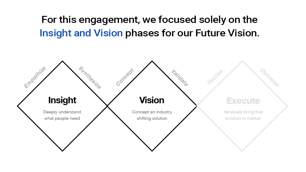 We customized the approach to specifically meet the needs of this engagement, which was to focus solely on the Insight & Vision phases to ensure the violacity needed for an MVP pilot.