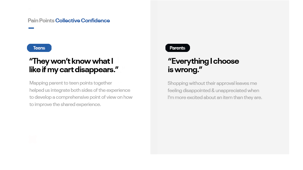 The learnings, however, were invaluable to future explorations of teen shopping behaviors, their attitudes on shared-shopping, and friction within their unique journey.
